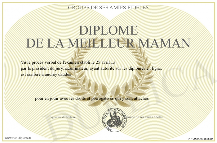 Envoyez par email votre Diplôme de la meilleur maman personalisé