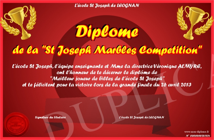 Envoyez par email votre Diplôme de la -St Joseph Marbles Competition- personalisé