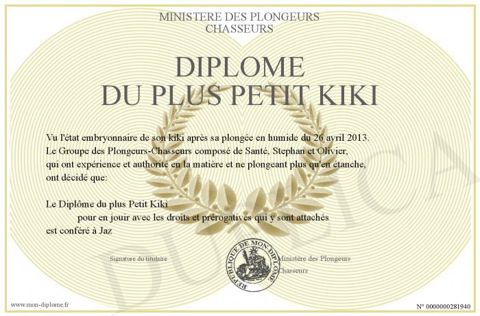 Envoyez par email votre Diplôme du plus petit kiki personalisé