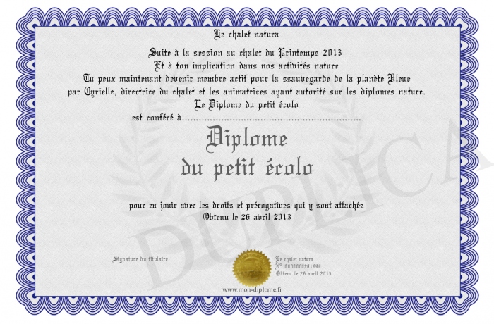 Envoyez par email votre Diplôme du petit écolo personalisé