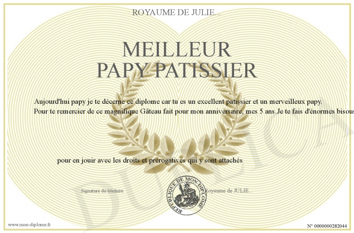 Envoyez par email votre MEILLEUR PAPY PATISSIER personalisé