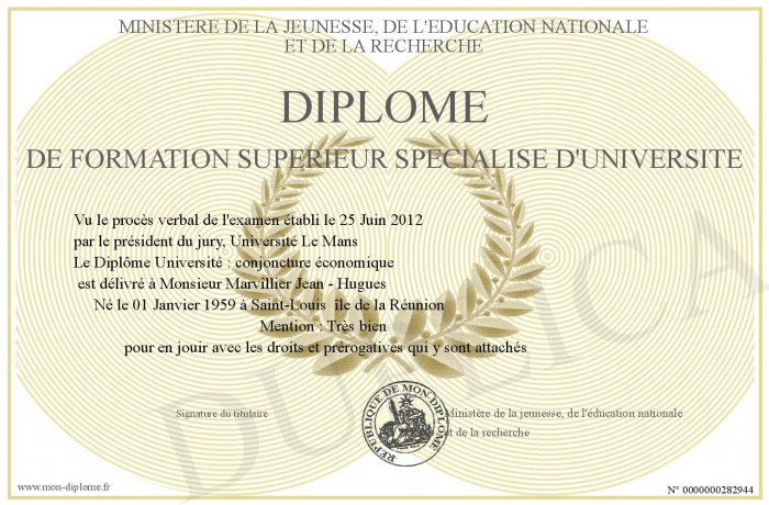 Envoyez par email votre Diplôme de Formation Supérieur Spécialisé d'Université personalisé