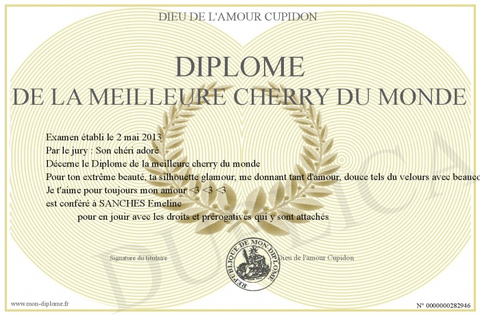 Envoyez par email votre Diplôme de la meilleure cherry du monde personalisé