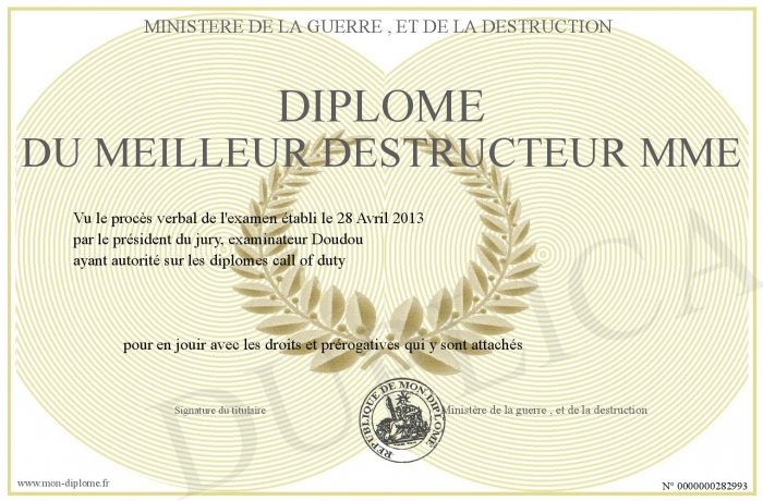 Envoyez par email votre Diplôme du Meilleur destructeur MME personalisé