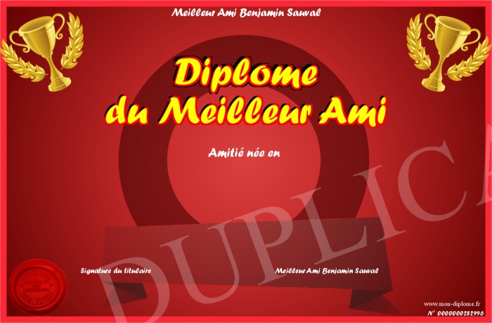 Envoyez par email votre Diplôme du Meilleur Ami personalisé
