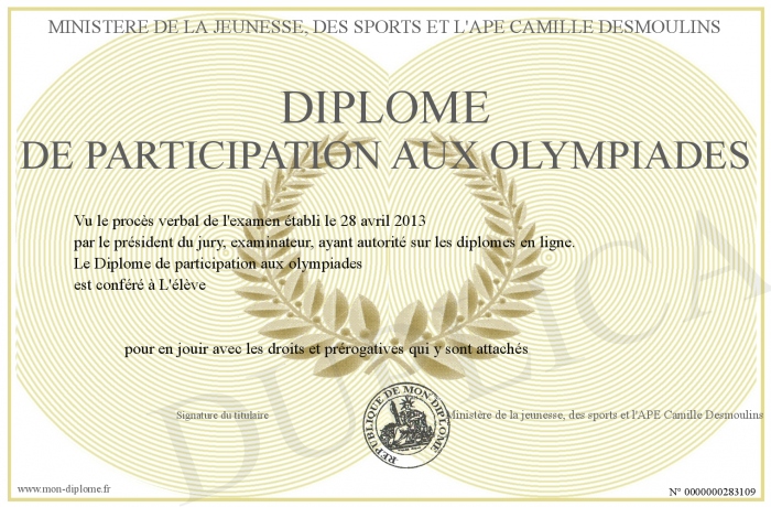 Envoyez par email votre Diplôme de participation aux olympiades personalisé