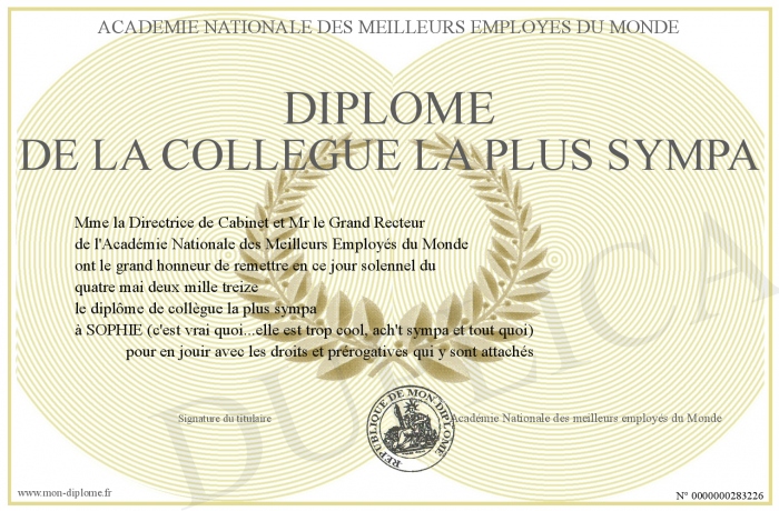 envoyé par le Académie Nationale des meilleurs employés du Monde !