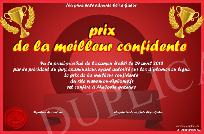 Envoyez par email votre prix de la meilleur confidente personalisé