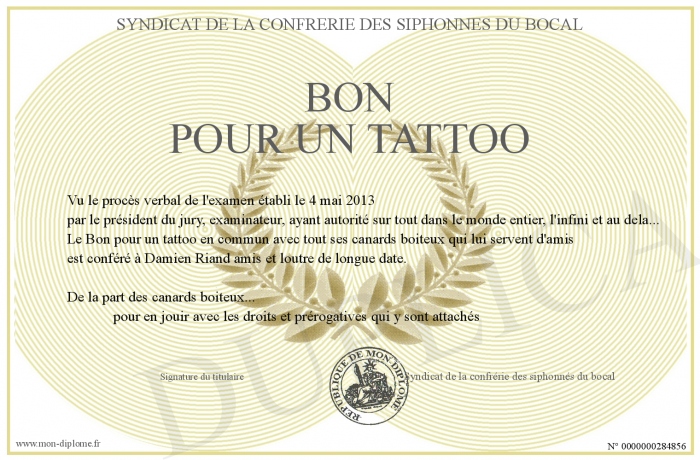 Envoyez par email votre Bon pour un Tattoo personalisé