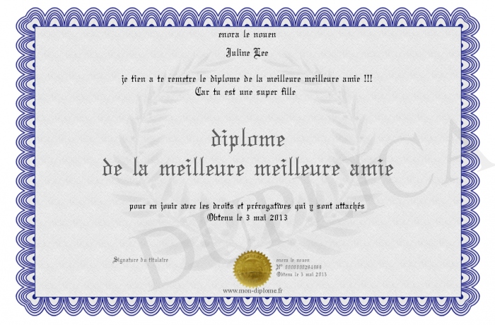 Envoyez par email votre diplome de la meilleure meilleure amie personalisé