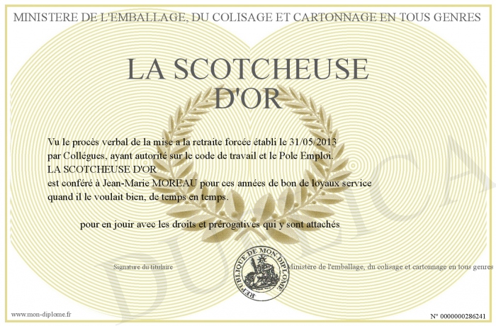 Envoyez par email votre LA SCOTCHEUSE D'OR personalisé
