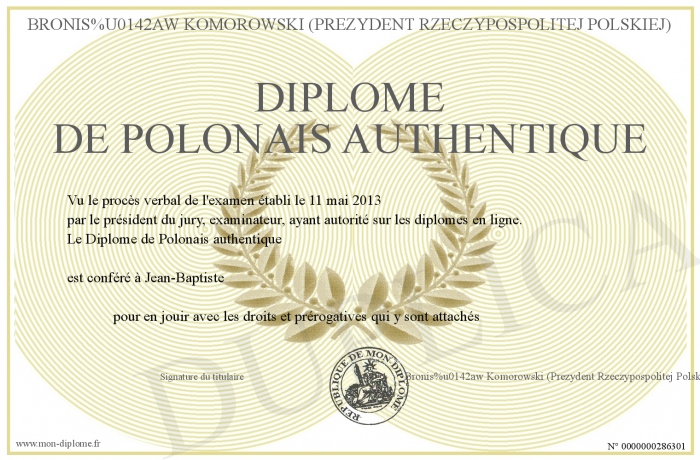 Envoyez par email votre Diplôme de Polonais authentique personalisé