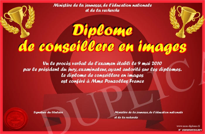 Envoyez par email votre Diplôme de conseillere en images personalisé