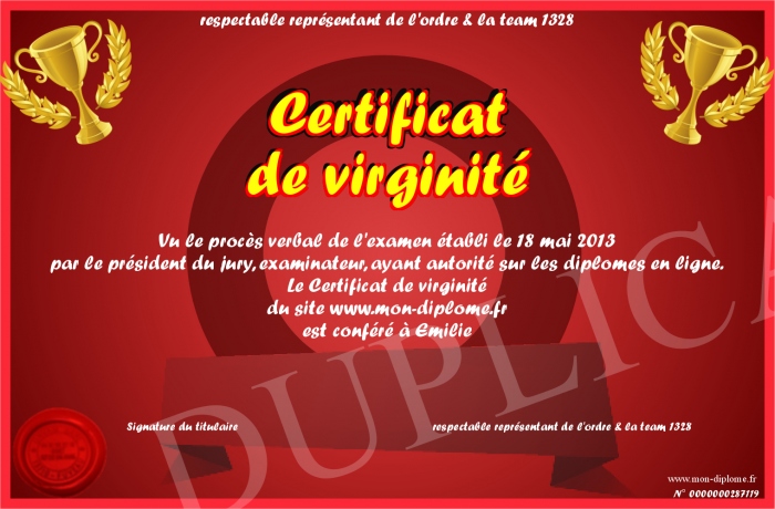 Envoyez par email votre Certificat de virginité personalisé