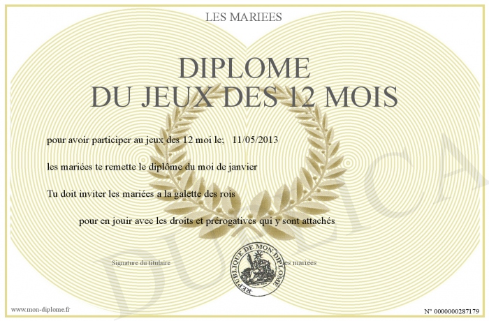 Envoyez par email votre diplome du jeux des 12 mois personalisé