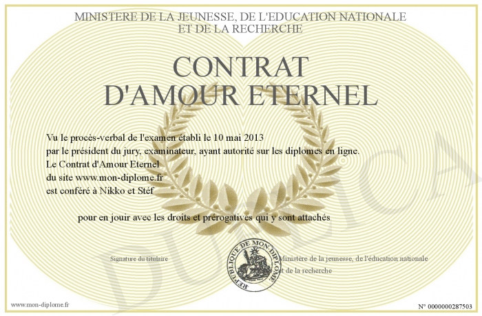 Envoyez par email votre Contrat d'Amour Eternel personalisé