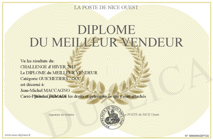 Envoyez par email votre Diplôme du MEILLEUR VENDEUR personalisé