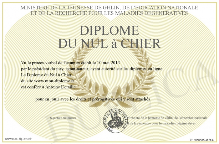 Envoyez par email votre Diplôme du Nul à Chier personalisé