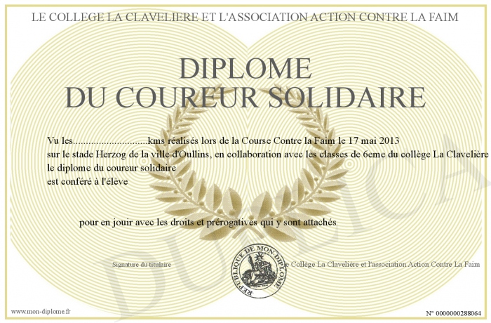Envoyez par email votre diplôme du coureur solidaire personalisé