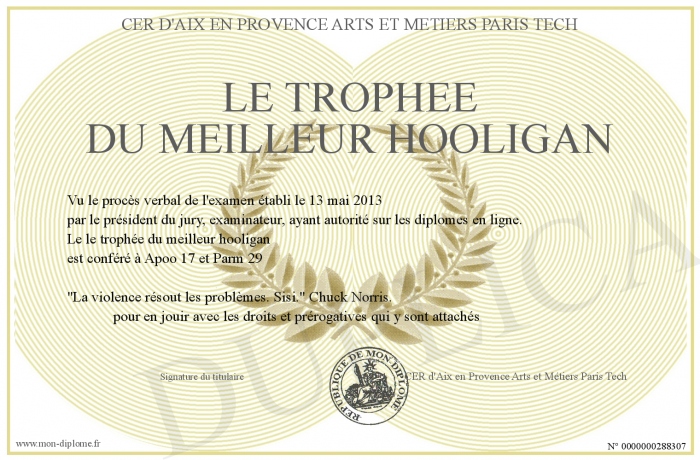 Envoyez par email votre le trophée du meilleur hooligan personalisé