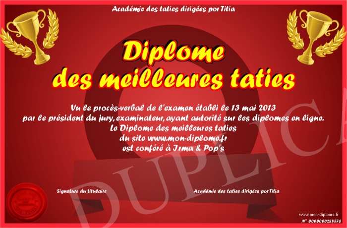 Envoyez par email votre Diplôme des meilleures taties personalisé