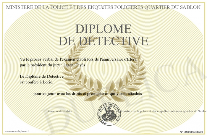 Envoyez par email votre Diplôme de Détective personalisé