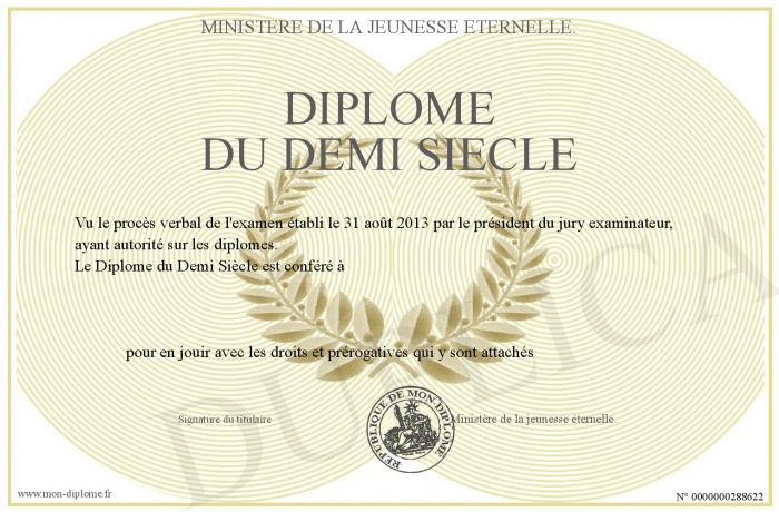 Envoyez par email votre Diplôme du Demi Siècle personalisé