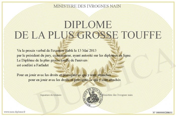 Envoyez par email votre Diplôme de la plus grosse touffe personalisé