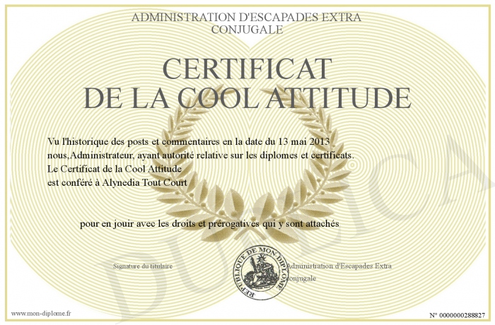 Envoyez par email votre Certificat de la Cool Attitude personalisé