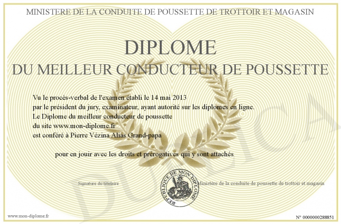 Envoyez par email votre Diplôme du meilleur conducteur de poussette personalisé
