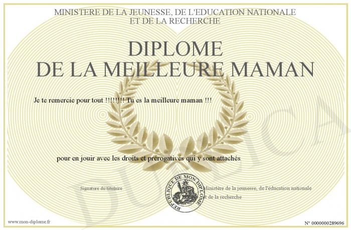 Envoyez par email votre Diplôme de la meilleure maman personalisé
