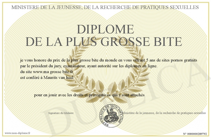 Envoyez par email votre Diplôme de la plus grosse bite personalisé