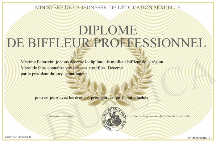 Envoyez par email votre Diplôme de biffleur proffessionnel personalisé