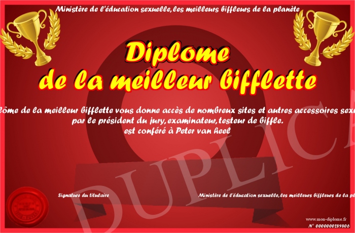 Envoyez par email votre Diplôme de la meilleur bifflette personalisé
