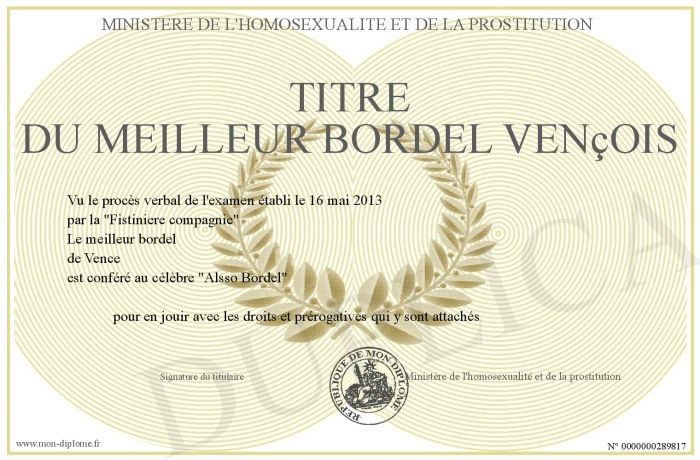 Envoyez par email votre Titre du meilleur bordel vençois personalisé