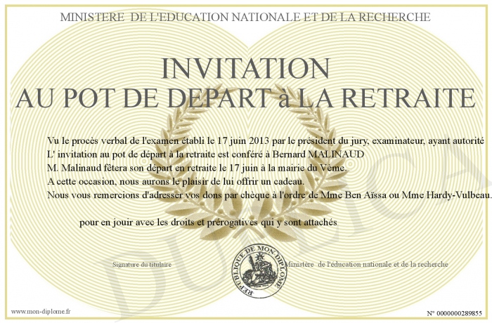 Envoyez par email votre invitation au pot de départ à la retraite personalisé