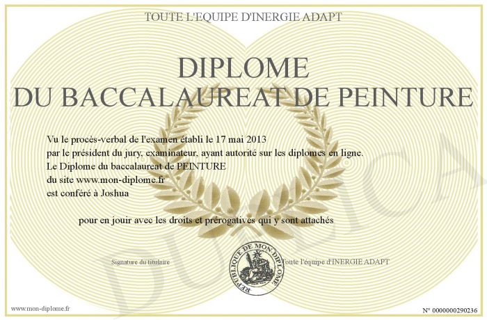 Envoyez par email votre Diplôme du baccalaureat de PEINTURE personalisé