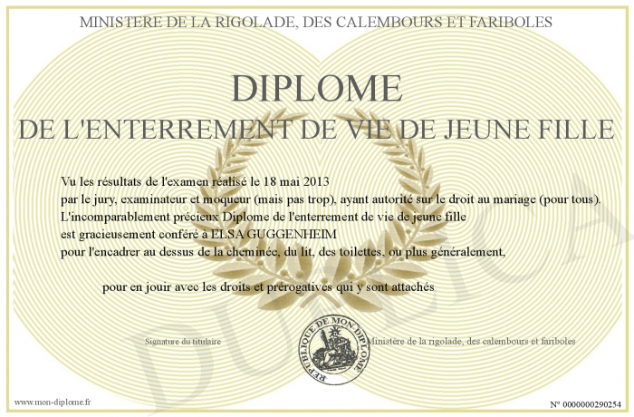 Envoyez par email votre Diplôme de l'enterrement de vie de jeune fille personalisé