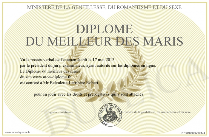 Envoyez par email votre Diplôme du meilleur des maris personalisé