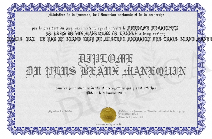 Envoyez par email votre DIPLOME DU PLUS BEAUX MANEQUIN personalisé