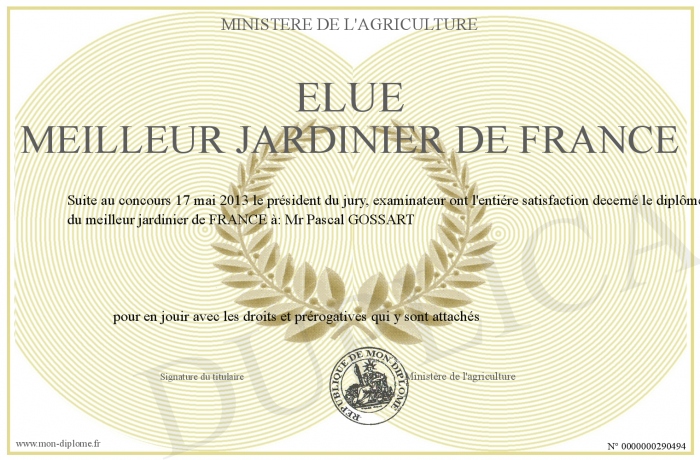 Envoyez par email votre Elue meilleur jardinier de FRANCE personalisé