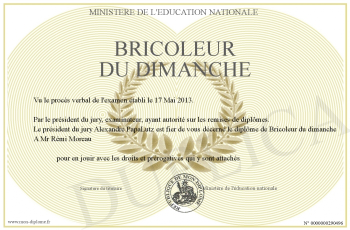 Envoyez par email votre Bricoleur du dimanche personalisé