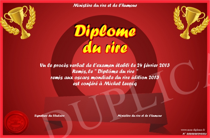Envoyez par email votre Diplôme du rire personalisé