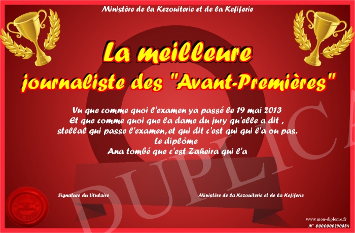 Envoyez par email votre La meilleure journaliste des -Avant-Premières- personalisé