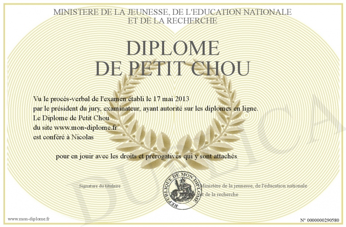 Envoyez par email votre Diplôme de Petit Chou personalisé