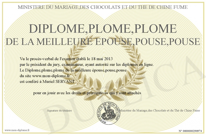 Envoyez par email votre Diplôme,plome,plome de la meilleure épouse,pouse,pouse personalisé