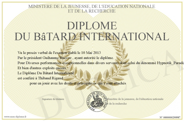 Envoyez par email votre Diplôme du Bâtard International personalisé