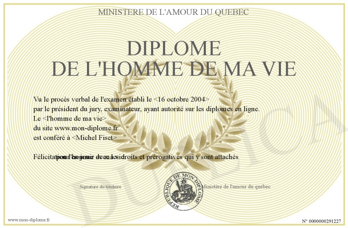 Envoyez par email votre Diplôme de l'homme de ma vie personalisé