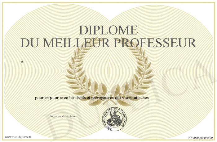 Envoyez par email votre Diplôme du meilleur professeur personalisé