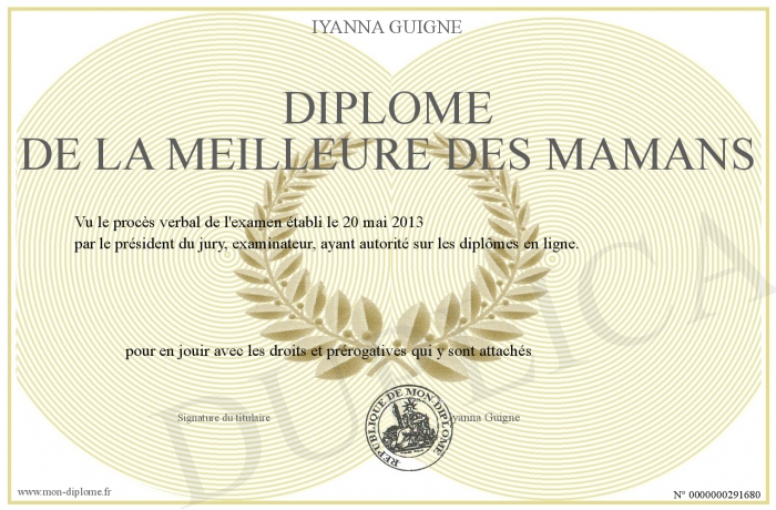 Envoyez par email votre Diplôme de la meilleure des mamans personalisé